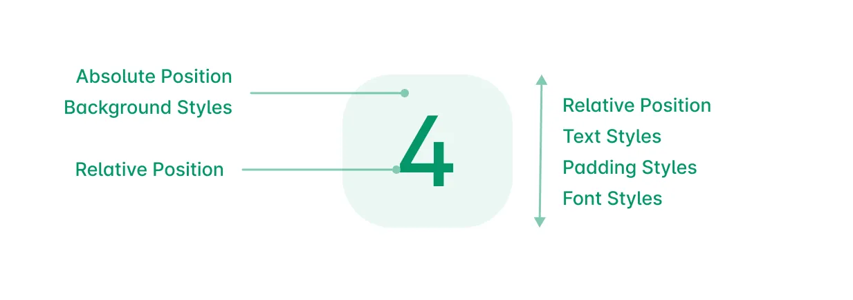 The wrapping span will have relative position so that we can have an absolute positioned empty background span inside it. The order also matters here, inside the wrapper span, the background should come first and then the number span should come which is also relatively positioned.
